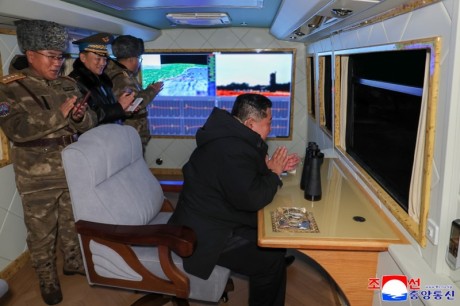 Vážený soudruh Kim Čong-un dohlíží na test organizovaný Ústavem obrněných zbraní Akademie obranných věd