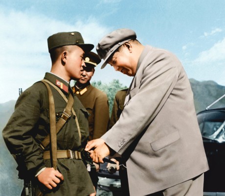 Vážený soudruh Kim Čong-un dohlíží na útočné taktické cvičení pěších a tankových podjednotek