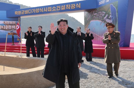 Vážený soudruh Kim Čong-un si prohlíží torpédoborec Čoe Hjon