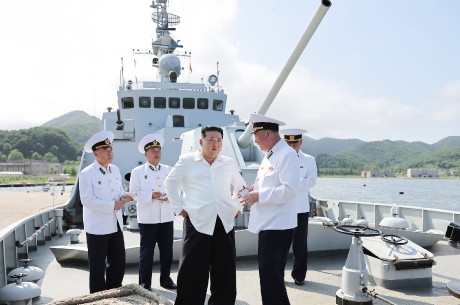 Vážený soudruh Kim Čong-un si prohlíží torpédoborec Čoe Hjon