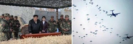 Vážený soudruh Kim Čong-un dohlíží na útočné taktické cvičení pěších a tankových podjednotek